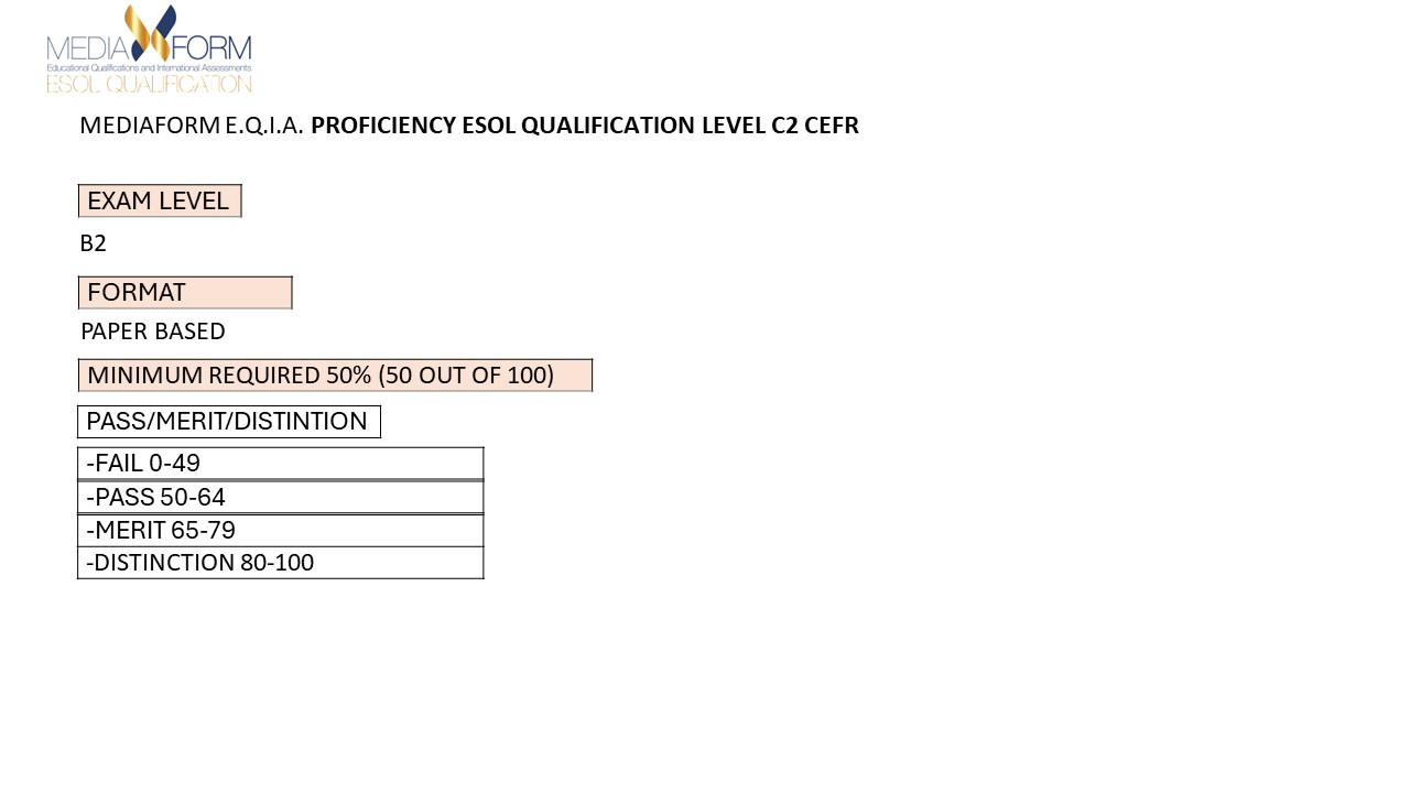 MEDIAFORM E.Q.I.A. PROFICIENCY ESOL QUALIFICATION – CEFR C2